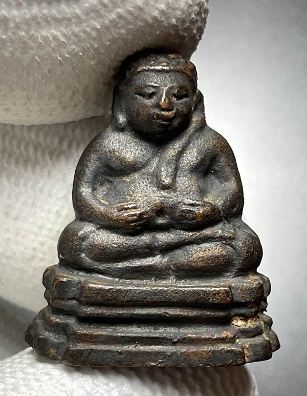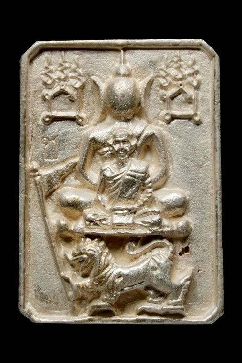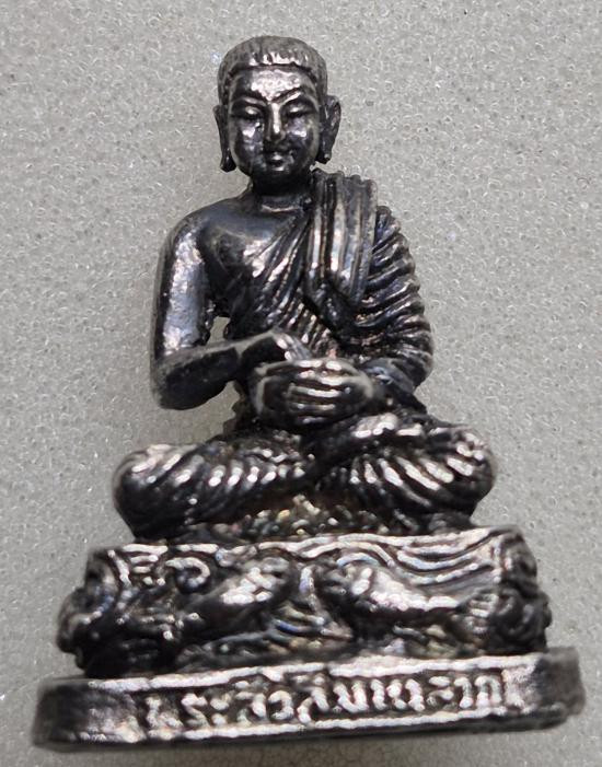 พระสังกัจจายน์อุ้มบาตร เนื้อตะกั่วปิดปากถุงเงิน หลวงพ่อชำนาญ |