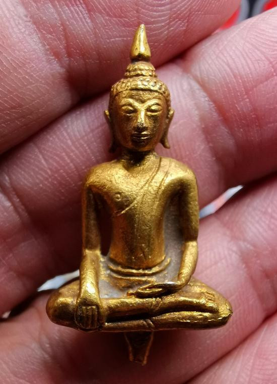 พระยอดธงหล่อโบราณเนื้อทองผสม เก่าๆ ไม่ทราบที่ครับ |