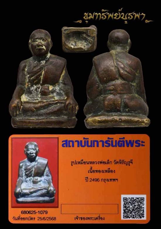 รูปเหมือนหลวงพ่อเล็ก วัดหิรัญรูจี เนื้อทองเหลือง ปี 2496 มีบัตรรับรองของเว็บ สบายใจได้เลยครับ |