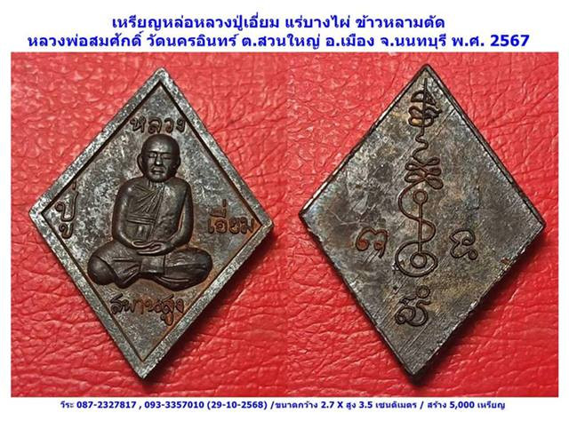 เหรียญหล่อหลวงปู่เอี่ยม แร่บางไผ่ หลวงพ่อสมศักดิ์ วัดนครอินทร์ จ.นนทบุรี พ.ศ.2567 หลวงพ่อเกาะ วัดท่าสมอ/หลวงพ่อใจ วัดพระยาญาติ/หลวงพ่อชู วัดทัพชุมพล/หลวงพ่อรัตน์ วัดป่าหวาย/อาจารย์อี๊ด วัดดงยาง / เสก |
