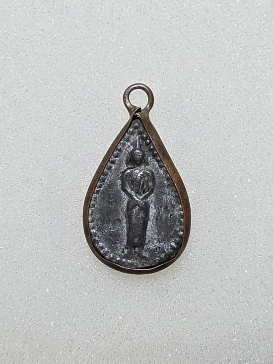 พระประจำวัน(วันจันทร์) ปางห้ามสมุทร หลวงพ่อเดิม วัดหนองโพ จ.นครสวรรค์ หลังยันต์ เนื้อตะกั่วจุ่มรัก |