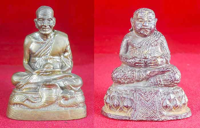 รวม 2 องค์ .. หลวงปู่แผ้ว ปวโร รูปเหมือนปั๊มสดุ้งกลับ รุ่น๑ วัดหนองพงนก ปี 54 เนื้อสัตตะ พร้อมกล่อง |