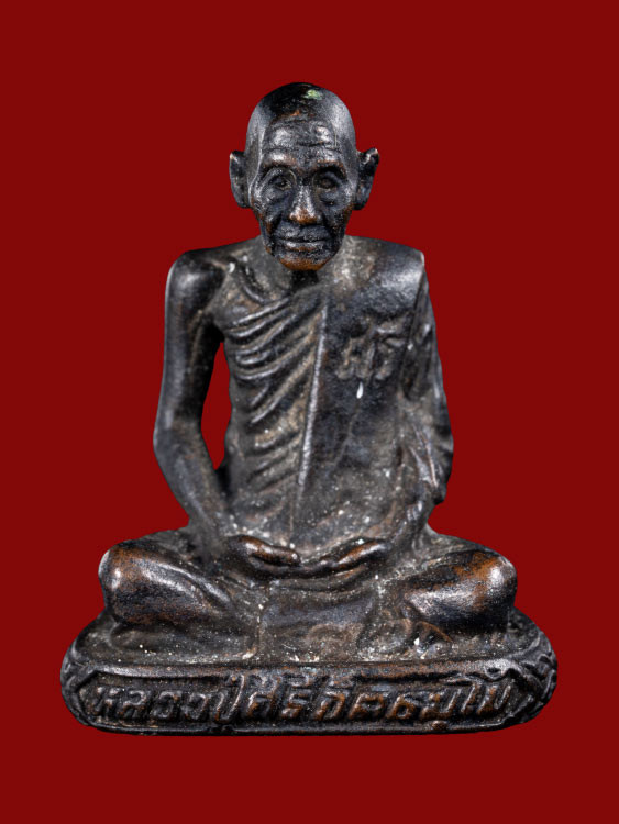 รูปเหมือนหล่อลอยองค์ หล่อตัน หลวงปู่ศรี ฐิตธัมโม วัดหลวงสุมังคลาราม จ.ศรีสะเกษ เนื้อทอแดงรมดำ ตอกโค๊ต |