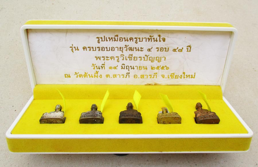 รูปหล่อ เนื้อเงิน ครบ 5 รอบ หลวงพ่อสาย วัดท่าไม้แดง จ.ตาก ปี2540 ตอกโค๊ต ก้นมีจาร กล่องเดิมสวยครับ |