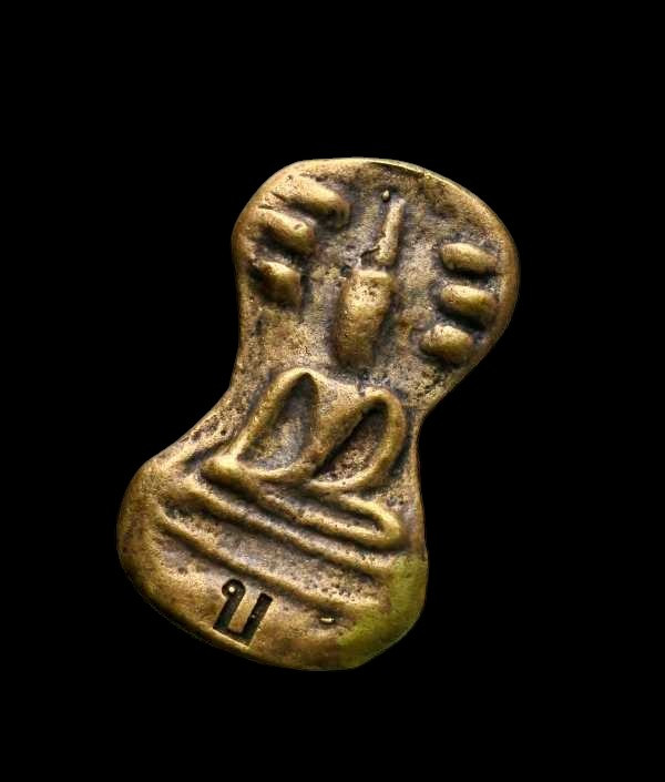 พระขุนเเผน แรงครู พลิกชีวิต พระอาจารย์แจ้ วัดน้อมประชาสรรค์ เหรียญหล่อตะกั่วมหายันต์ 3องค์ ไม่มีกล่อง (c) |
