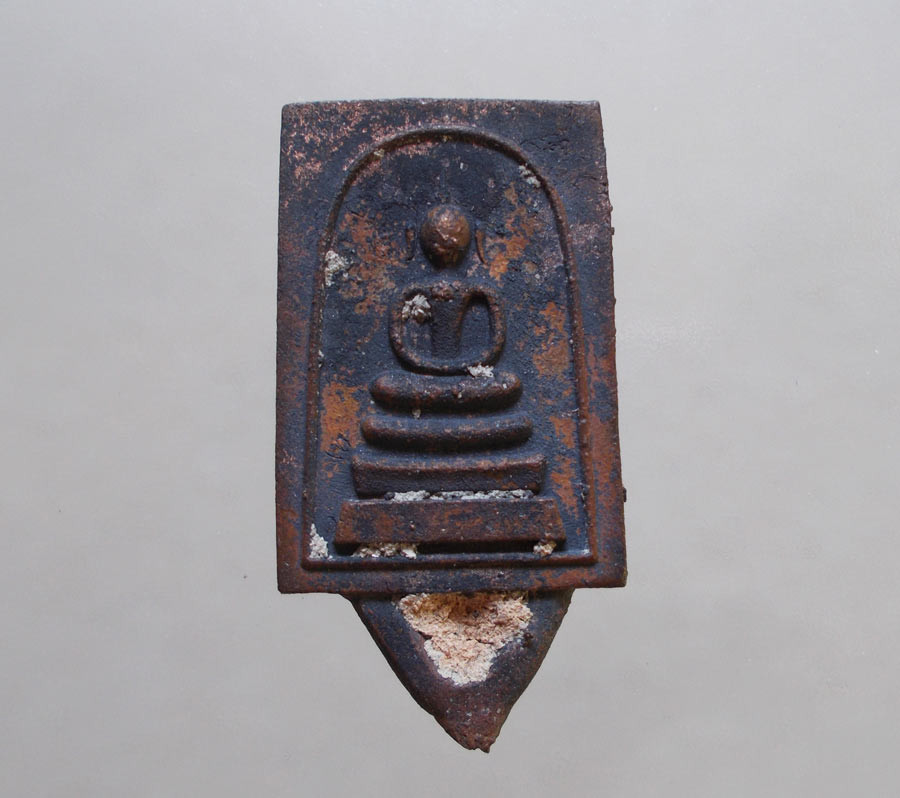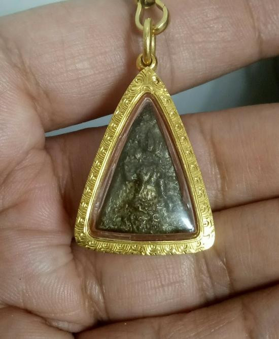 วัดใจ พระหูยาน หล่อตะกั่ว ไม่ทราบเกจิ มีลวดพัน เลี่ยมจับขอบแต่แตก ตามภาพ |