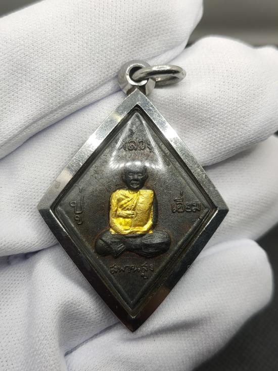 เคาะเดียวแดง!!!เหรียญหล่อหลวงปู่เอี่ยม วัดสะพานสูง เนื้อแร่บางไผ่ ฝังแผ่นยันต์ทองคำแท้ รุ่นมหาลาภ ปี2560 วัดนครอินทร์ จ.นนทบุรี พร้อมเลี่ยมใส่ตลับพุก |