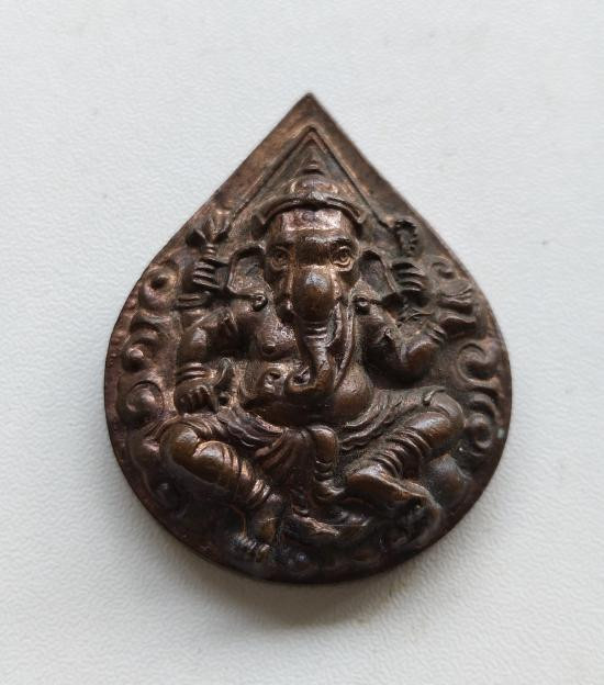 พระพิฆเนศหล่อโบราณ หลวงพ่อชำนาญ วัดบางกุฎีทอง สร้างปี พ.ศ 2546 เนื้อทองแดง ผิวไม่ปัด |