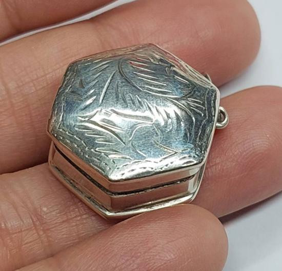 ตลับเงินงานเก่า แกะมือ หนัก 17.6 กรัม จอในกว้าง 2 ซม. สูง 3 ซม. สวยๆ ครับ |
