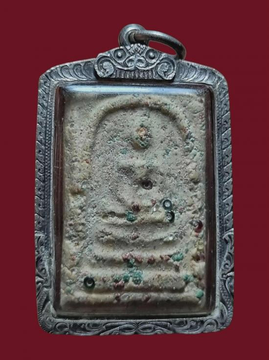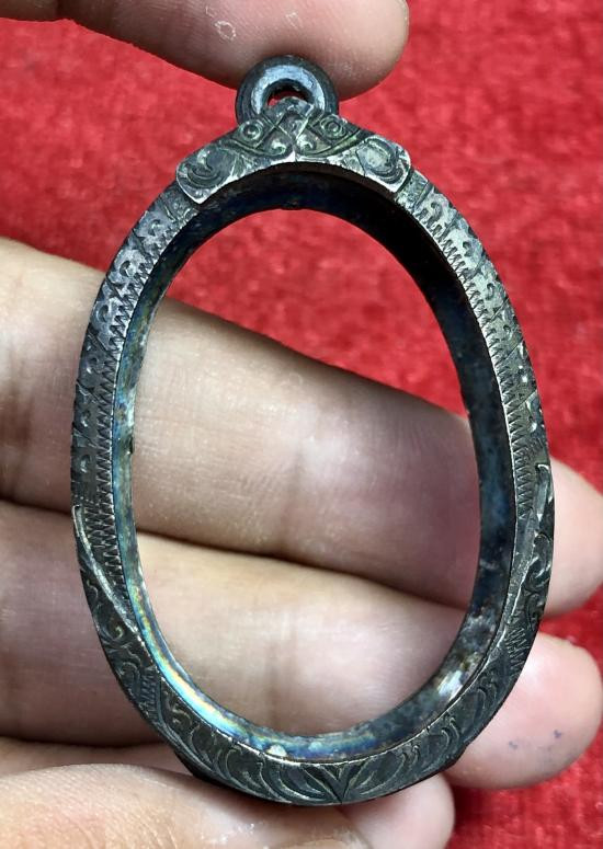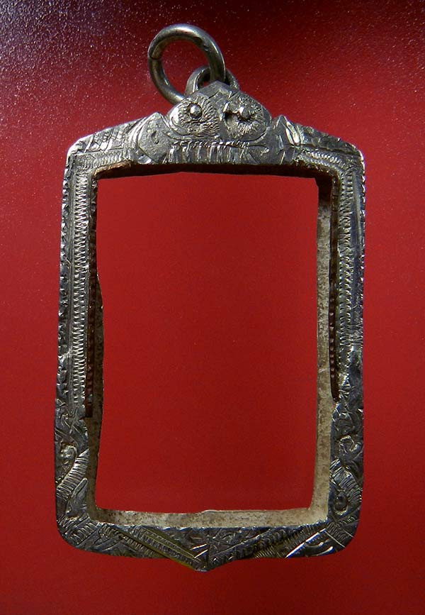 กรอบเงินหนาใส่หลวงพ่อโตบางกระทิงใหญ่มากหนาๆๆยกซุ้มบนล่างแกะมืออย่างดี |