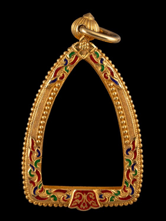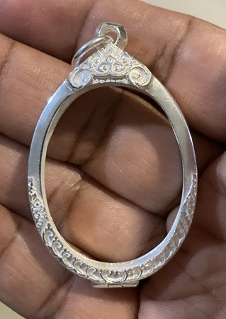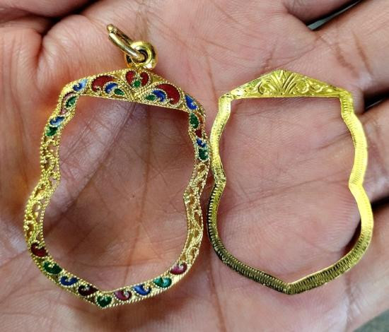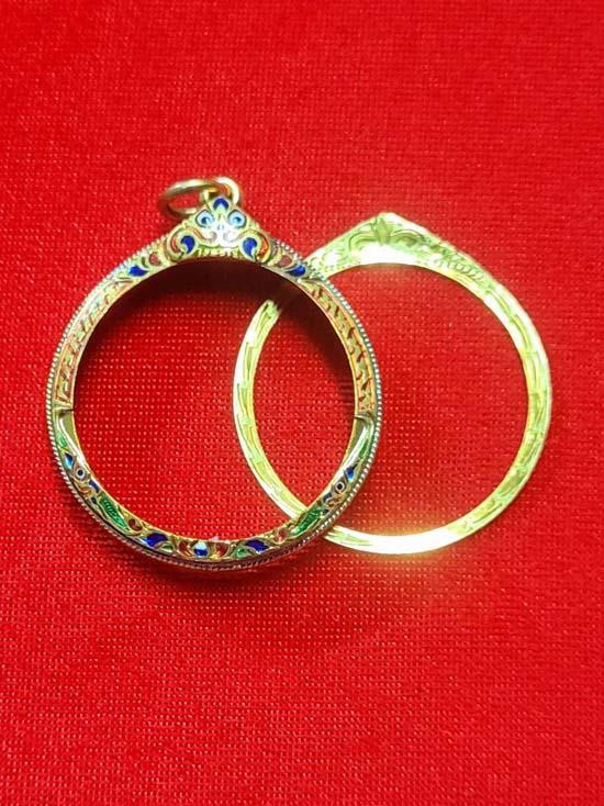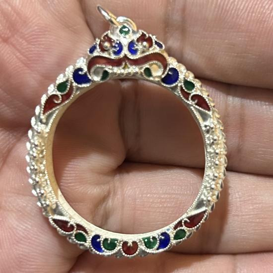 กรอบเงินชุบทองลงยา สำหรับพระกริ่ง เงินแท้ 93 % ครับ |