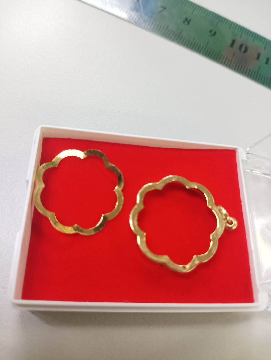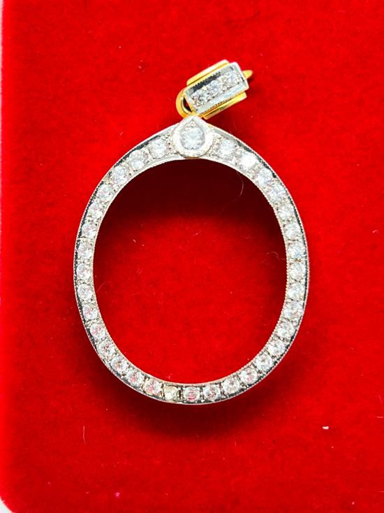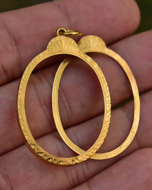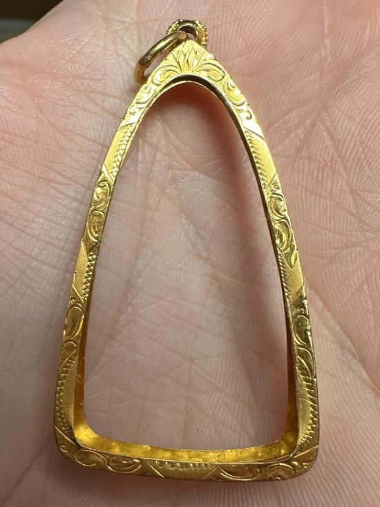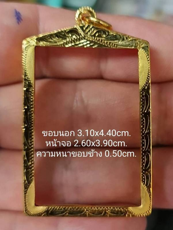 กรอบทองแท้มือสองสำหรับใส่ เหรียญและรูปหล่อขนาดเล็ก กว้างประมาณ 0.8 ซม หนัก 0.26 กรัม ตอกโค๊ดตรงห่วง 75 % |