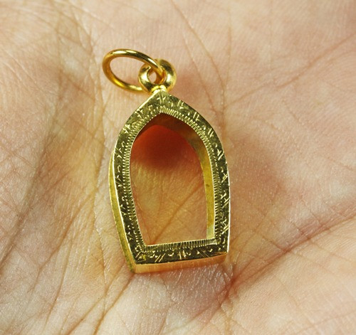 กรอบทองคำแท้ 80% มือ 1 ยกซุ้ม ขนาดหน้าจอ ขอบล่าง2.8xขอบกลาง2.7xขอบบน2.6xสูง4.0 cm,ใส่พระสมเด็จทั่วไปและรูปภาพ น้ำหนัก 1.87 กรัม |