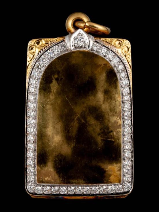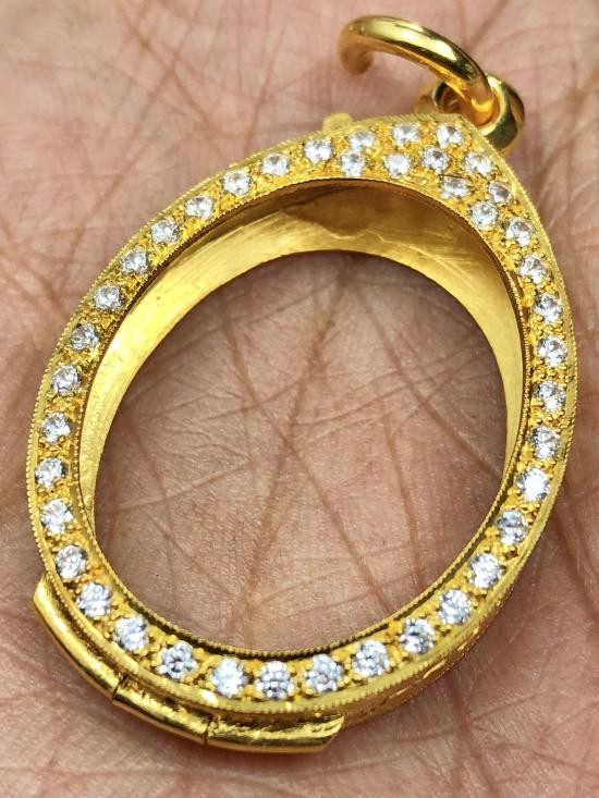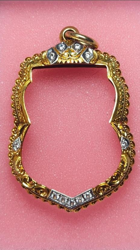 กรอบทองทรงเสมาปู่ทวด สภาพสวยๆ ฝังเพชร CZ หนัก 6.5กรัม 71% พร้อมบัตร |