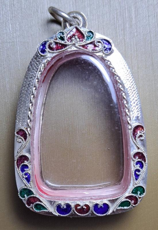 กรอบเงิน เก่า นกซุ้มลงยา แผ่นหลังไม่มี |