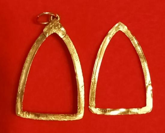 กรอบทองคำแท้ยกซุ้มสิงห์ ใส่ยอดขุนพลหลวงปู่โต๊ะ//เกจิอื่นๆจอใน09+1.4ซม.น้ำหนัก 0.52 กรัม |