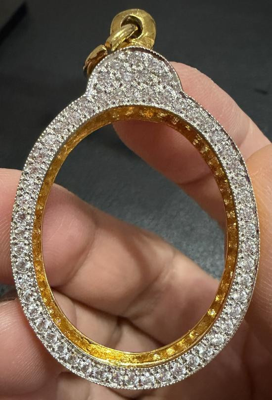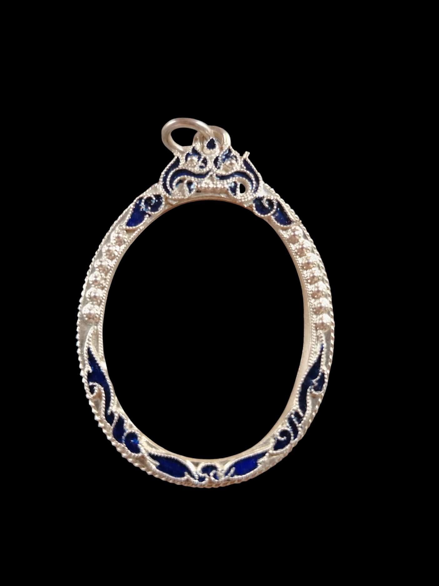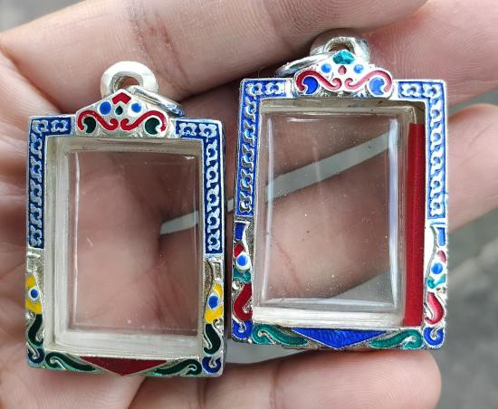 กรอบเงินชุบทองลงยา สำหรับพระกริ่ง เงินแท้ 93 % ครับ |