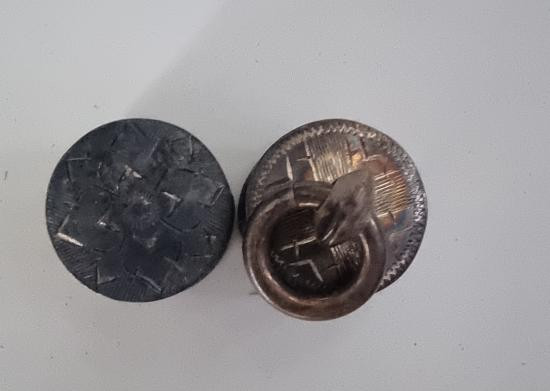 ตลับเงินงานเก่า ปิดฝาหลังแบบเดือย สวยคลาสสิค หน้าสิงห์ไม่แน่ใจว่านากหรือทองแดง(ขายเป็นทองแดงละกันครับ) |