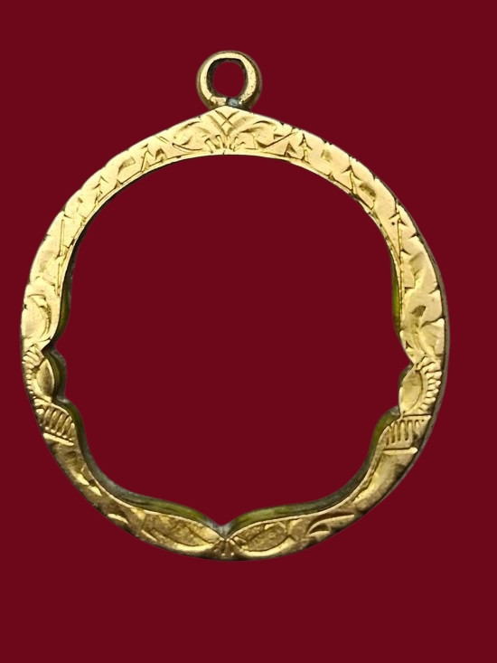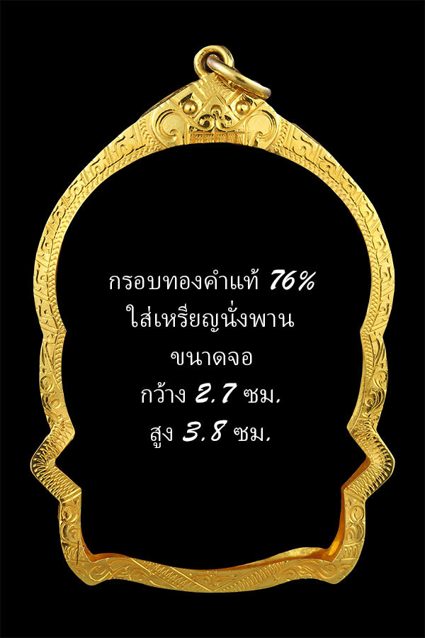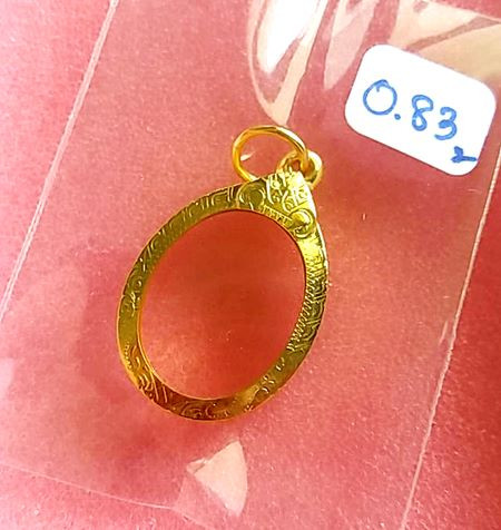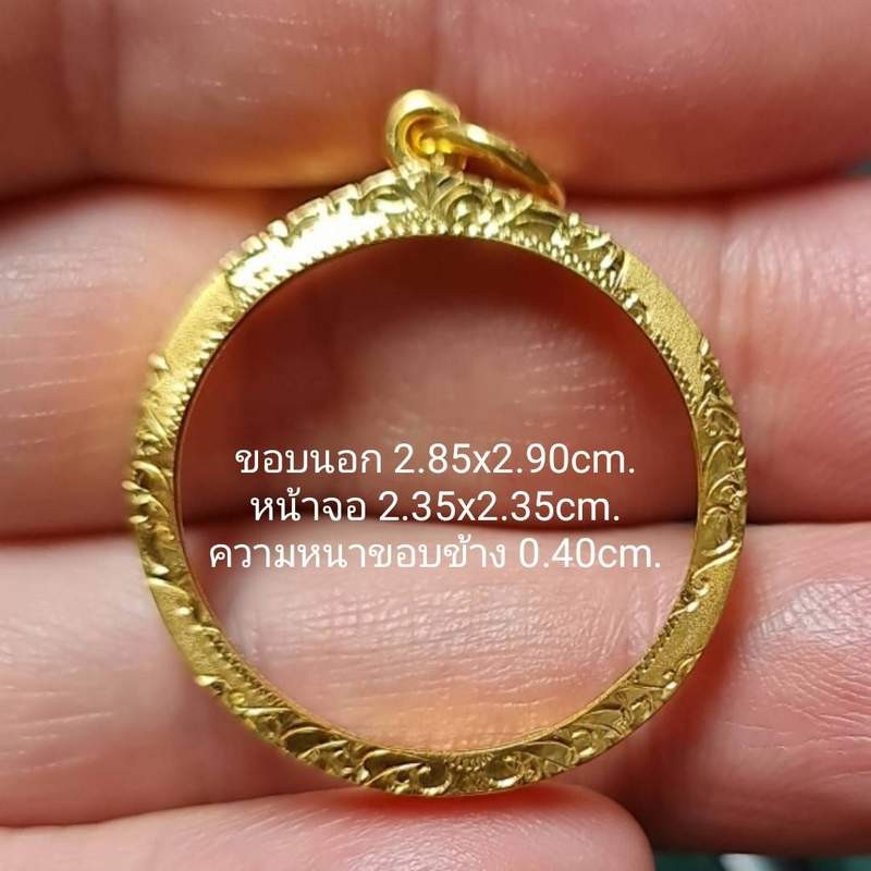 กรอบทองคำแท้ยกซุ้มสิงห์ ใส่เหรียญกลม/ลูกอม/เครื่องราง/เกจิอื่นๆจอใน1.3ซม..น้ำหนัก 0.76 กรัม |