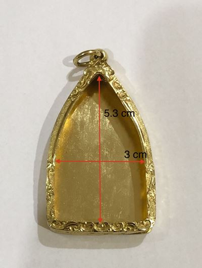 กรอบทองคำแท้ 80% มือ 1 ยกซุ้ม ขนาดหน้าจอ ขอบล่าง2.8xขอบกลาง2.7xขอบบน2.6xสูง4.0 cm,ใส่พระสมเด็จทั่วไปและรูปภาพ น้ำหนัก 1.91 กรัม |