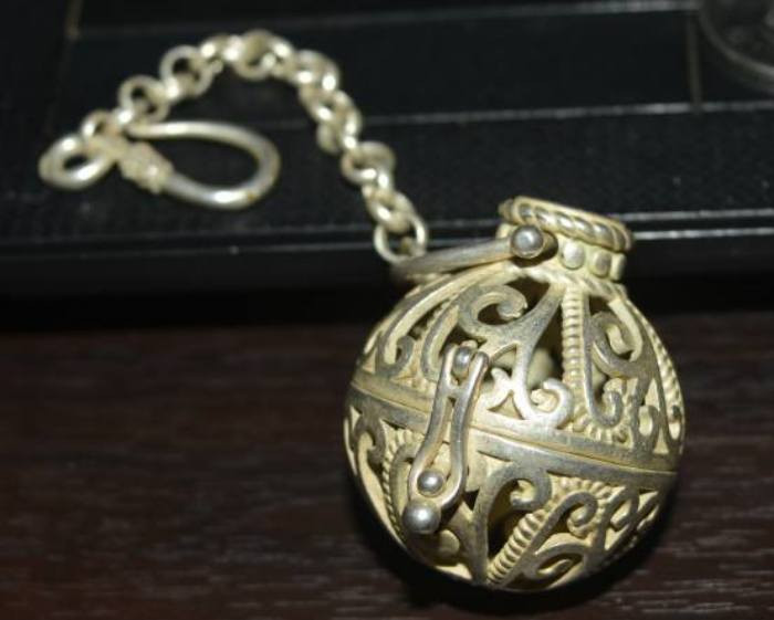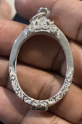 ตลับเงินแท้ 88.75% ชุบทองมือสองแกะลายใส่เหรียญมหาชนกใหญ่แบบเปิดหน้า-หลังสวยมาก |