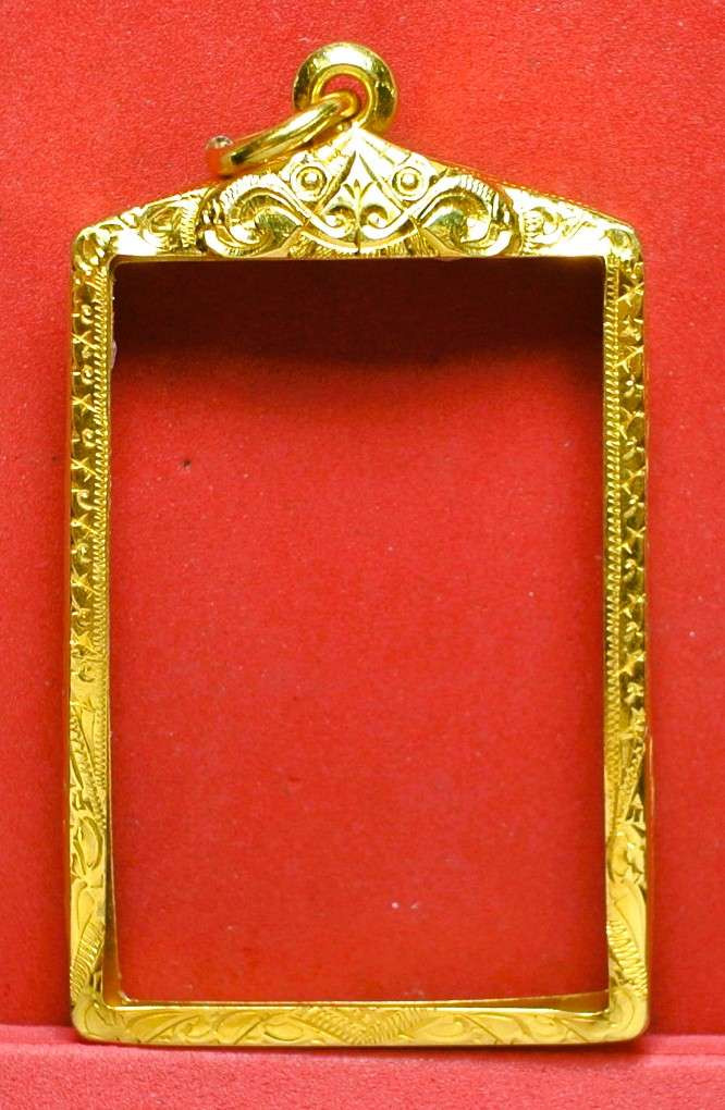 กรอบทองคำแท้ สี่เหลี่ยม มือสองหนาๆ น้ำหนัก 4.3กรัม สวยงาม %สูง สำหรับพระสมเด็จ-เกจิคณาจารย์ทั่วไป + บัตรรับรอง G-PRA |