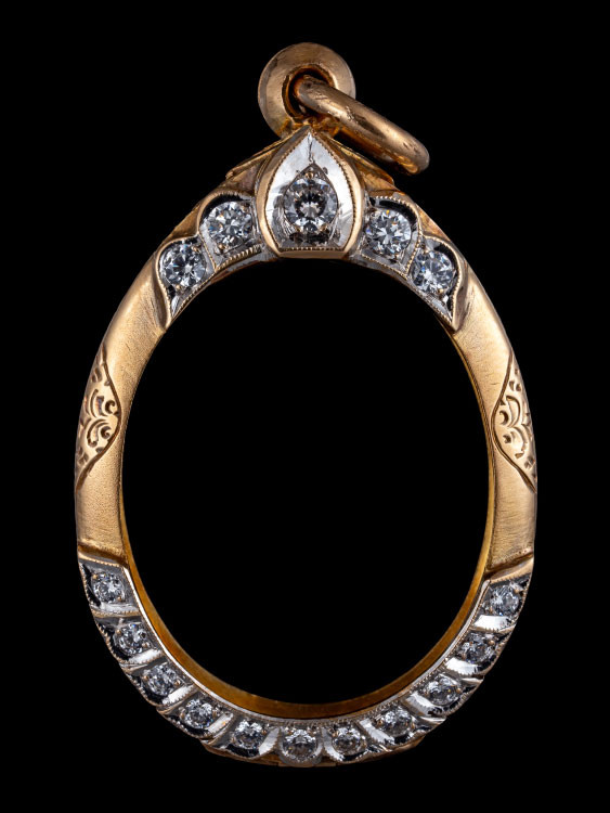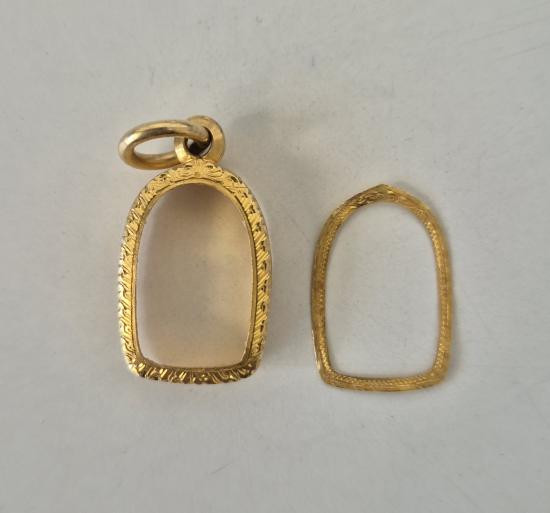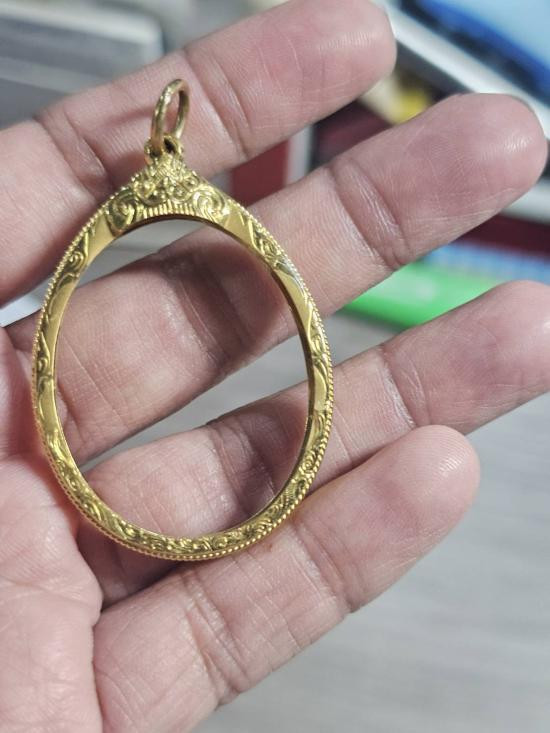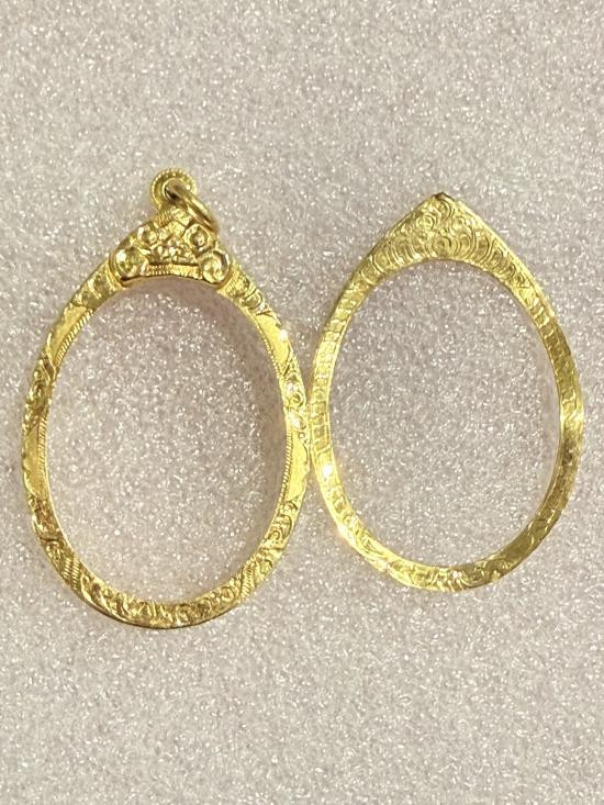 กรอบทองคำแท้ ใส่เหรียญรูปไข่ มือสอง น้ำหนัก 2.1กรัม ยกซุ้มสวยงาม เดิมใส่เหรียญหลวงปู่ทิม-เกจิคณาจารย์ทั่วไป + บัตรรับรอง G-PRA |