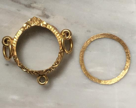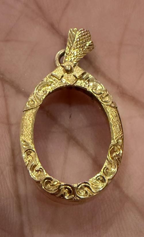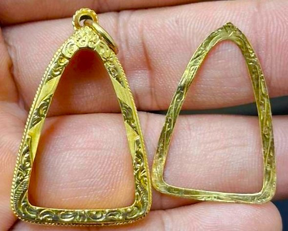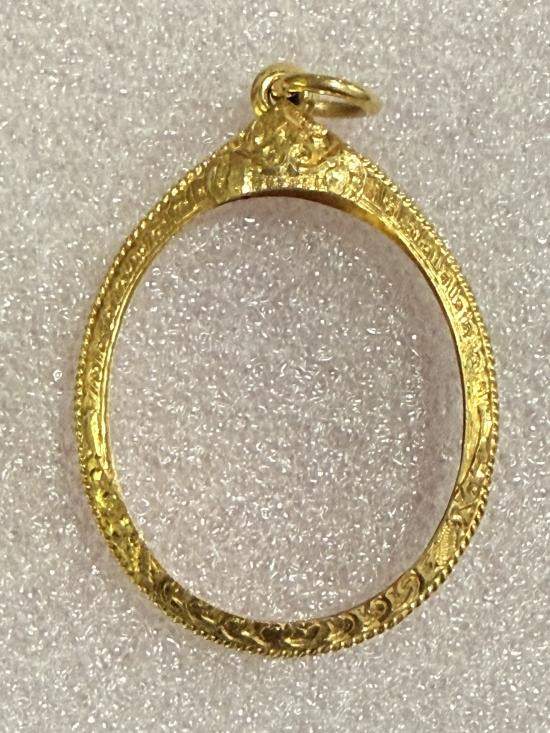 กรอบทองคำแท้ ใส่เหรียญเสมา มือสอง น้ำหนัก 2.2กรัม ยกซุ้มสวยงาม เดิมใส่เหรียญเสมา ลป.ทวด รุ่น3-เกจิคณาจารย์ทั่วไป + บัตรรับรอง G-PRA |
