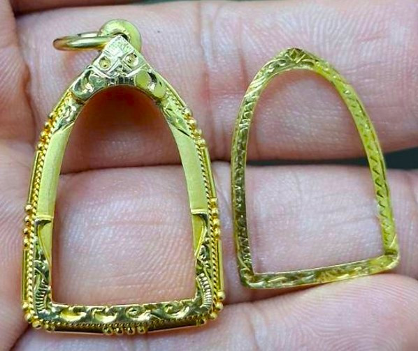 กรอบทองคำแท้ยกซุ้มสิงห์ ใส่ปรกมะขามหลวงพ่อคูณ/หลวงปู่โต๊ะ//เกจิอื่นๆ จอใน 0.7+1.5 ซม.น้ำหนัก 0.64กรัม |