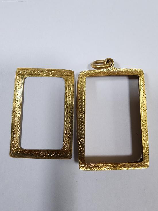 กรอบทองลงยา ใส่พระสมเด็จ เนื้อทองคำ 84 % หนัก 9.1 กรัม มือสองสภาพสวยครับ |