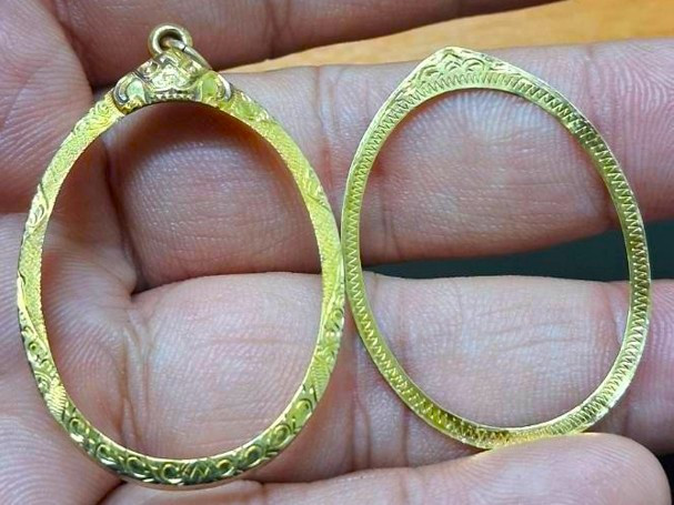 กรอบทอง ใส่เหรียญหลวงพ่อแดง รุ่น1-2-3 เนื้อทองคำ 71 % หนัก 6 กรัม มือสองสภาพสวย |