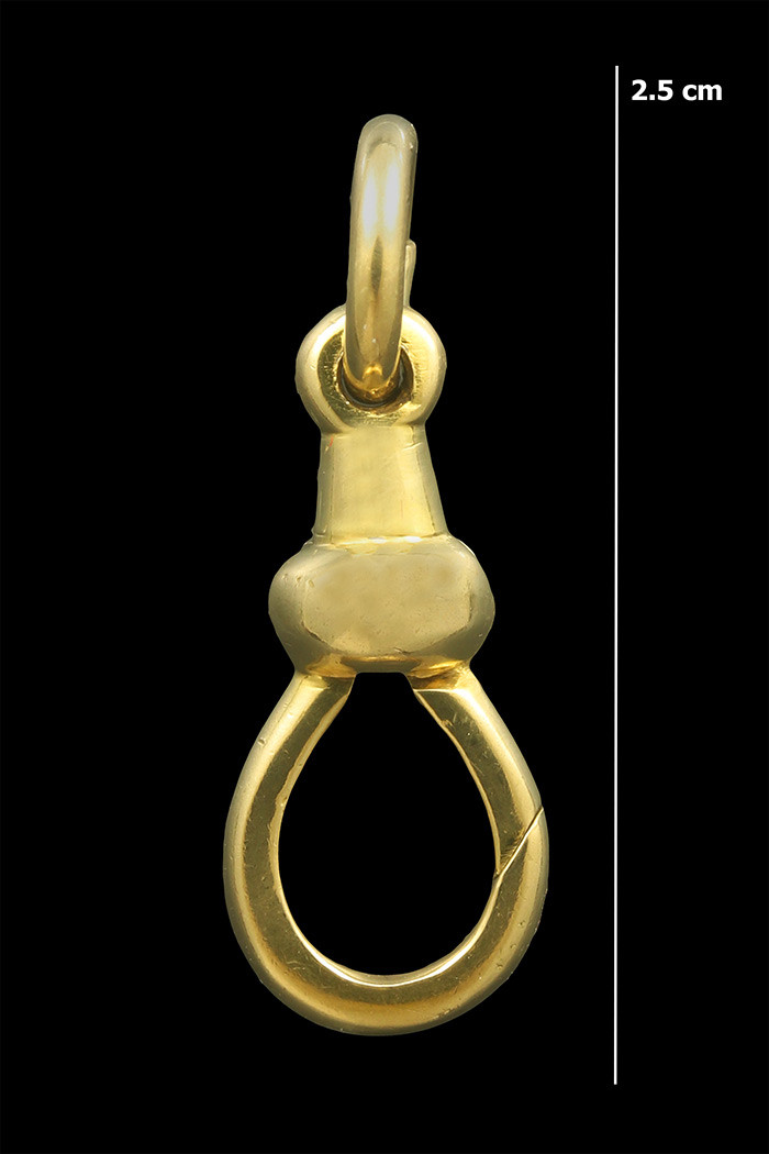 ก้ามปูทองคำแบบหมุนได้ เนื้อทองคำ 76 % น้ำหนัก 1.8 กรัม ขนาด 2 เซนติเมตร |
