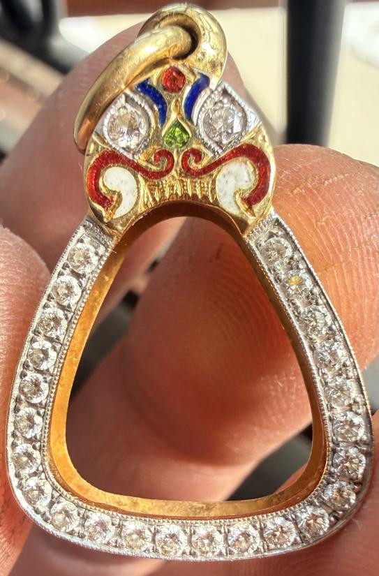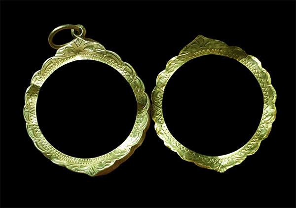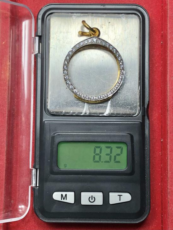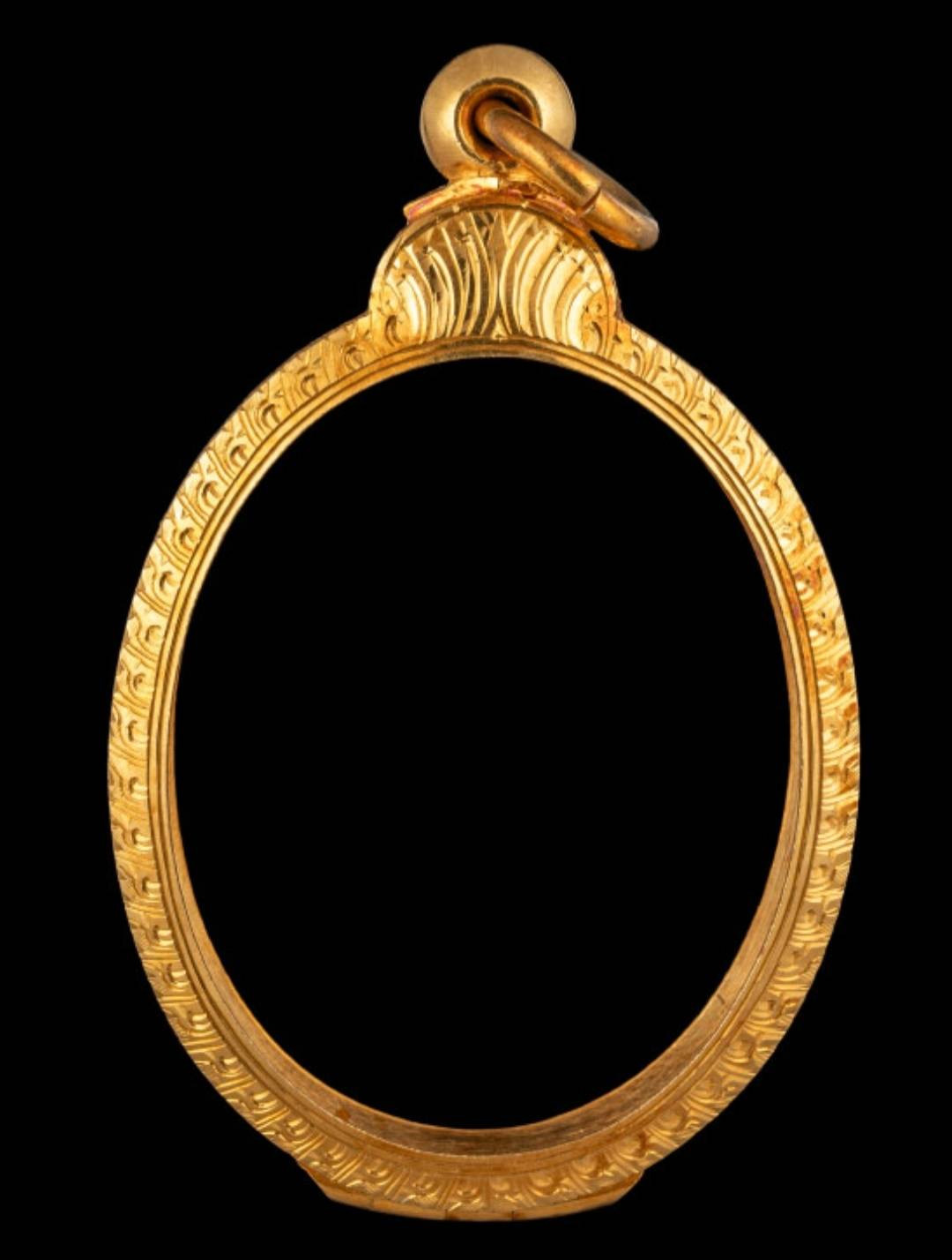 กรอบทองแท้มือสองคุณภาพดี สำหรับใส่ เหรีญญทรงกลมสภาพดี และอื่นๆ กว้างประมาณ 2.5 ซม สูง 2.7 ซม หนัก 1.87 กรัม |