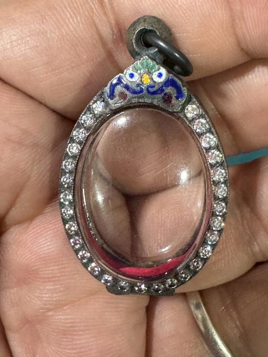 แดงเคาะแรก ตลับเงินแท้มือ2 เดิมใส่พระคำข้าว กระจก 1.8×2.6 เซนติเมตร |