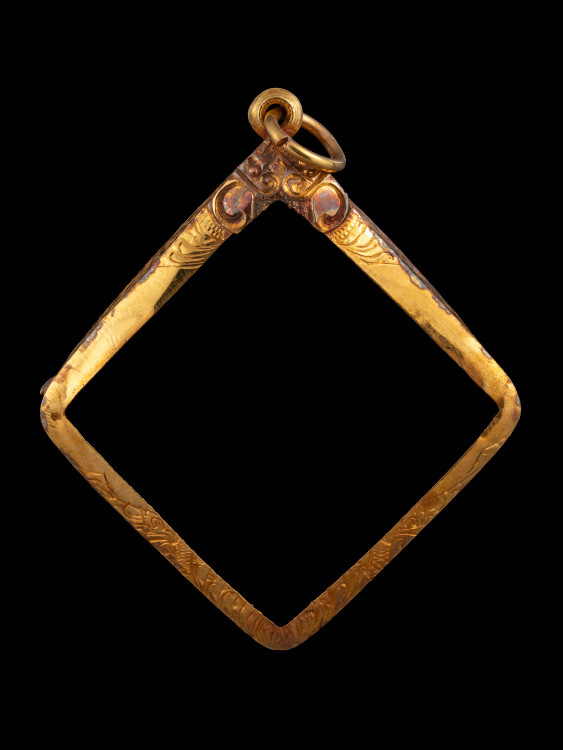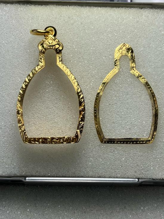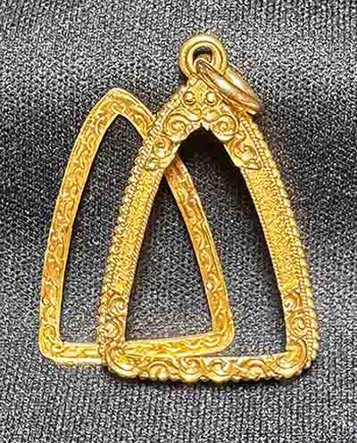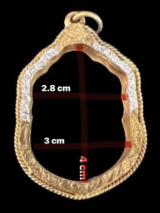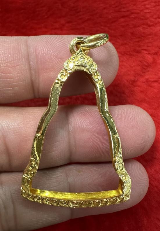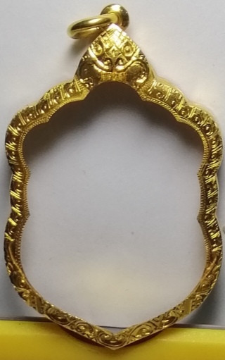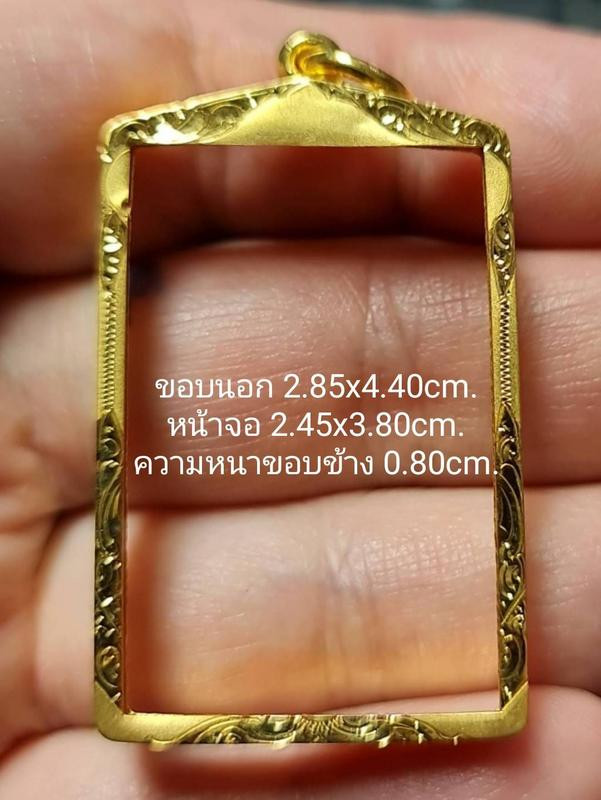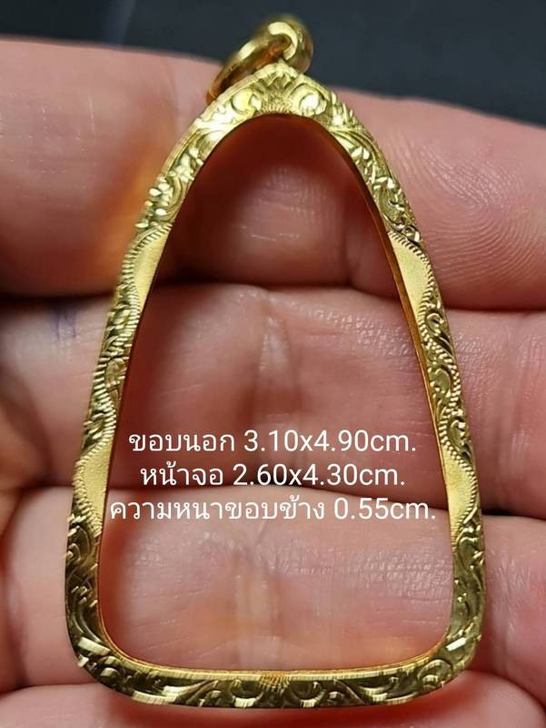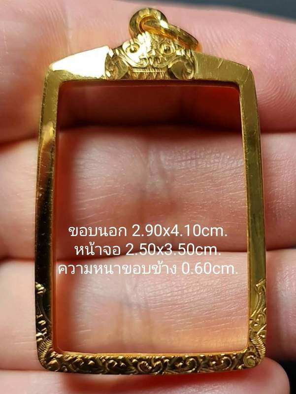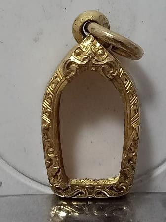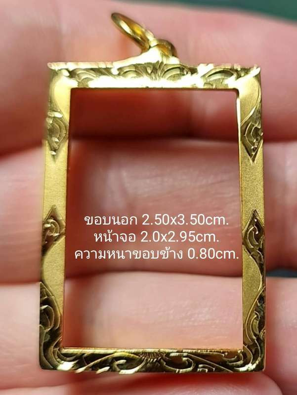 กรอบทองคำแท้ยกซุ้มหัวสิงห์ ใส่พระหางหมาก/คำข้าว/แสตมป์ปี30/เกจิอื่นๆจอใน2.1+2.8ซม.น้ำหนัก 1.21กรัม |