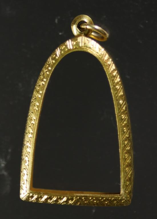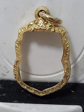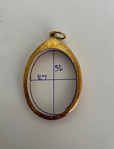 ***กรอบทองคำแท้ ทรงเหรียญรูปไข่ ยกซุ้มหัวสิงห์ น้ำหนักประมาณ 1.5กรัม*** |