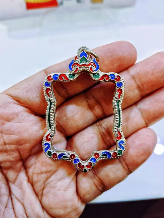 กรอบเงินชุบทองลงยา สำหรับพระกริ่ง เงินแท้ 93 % ครับ |