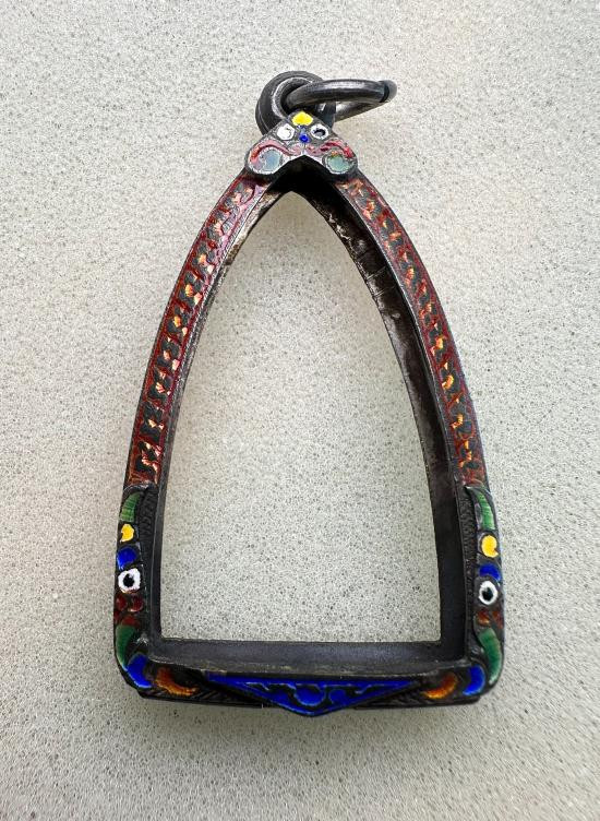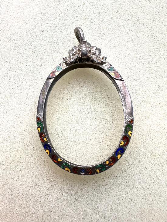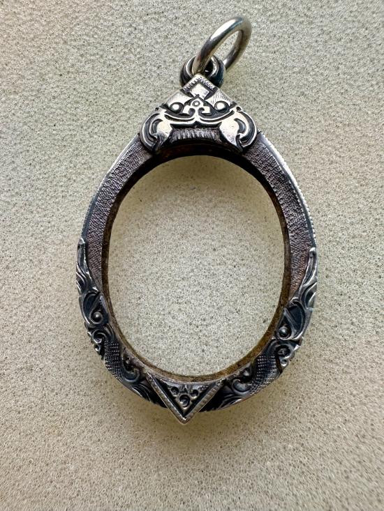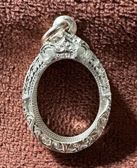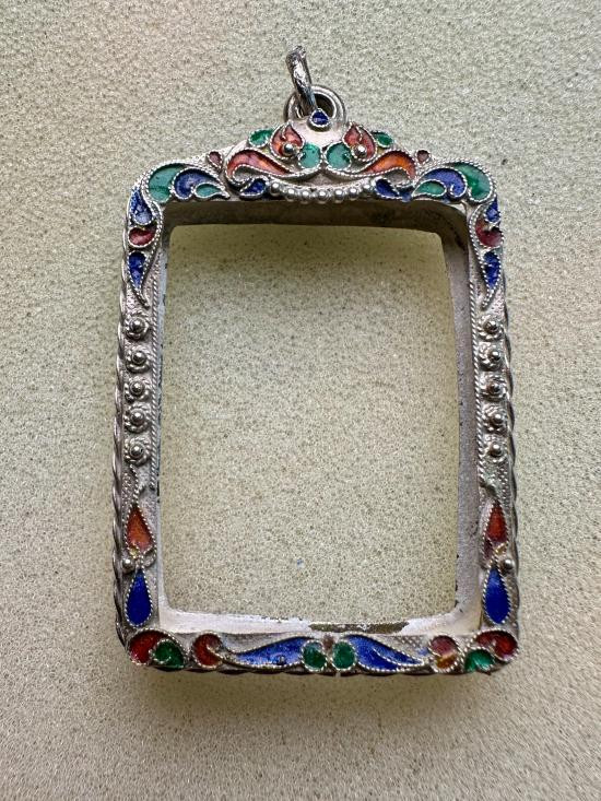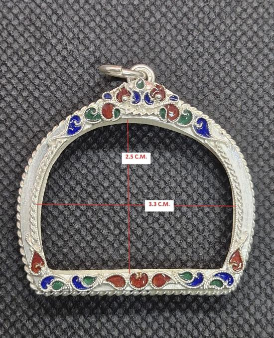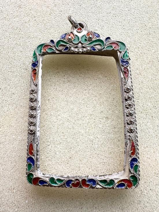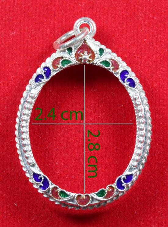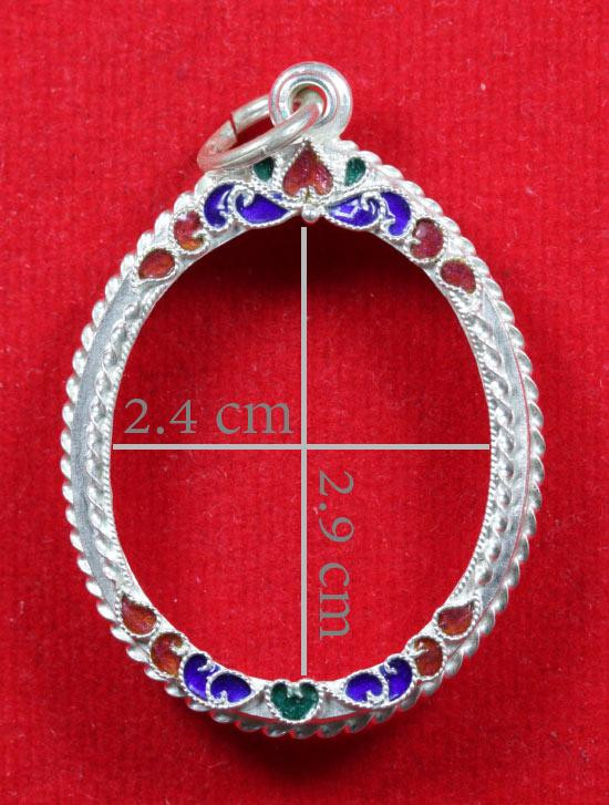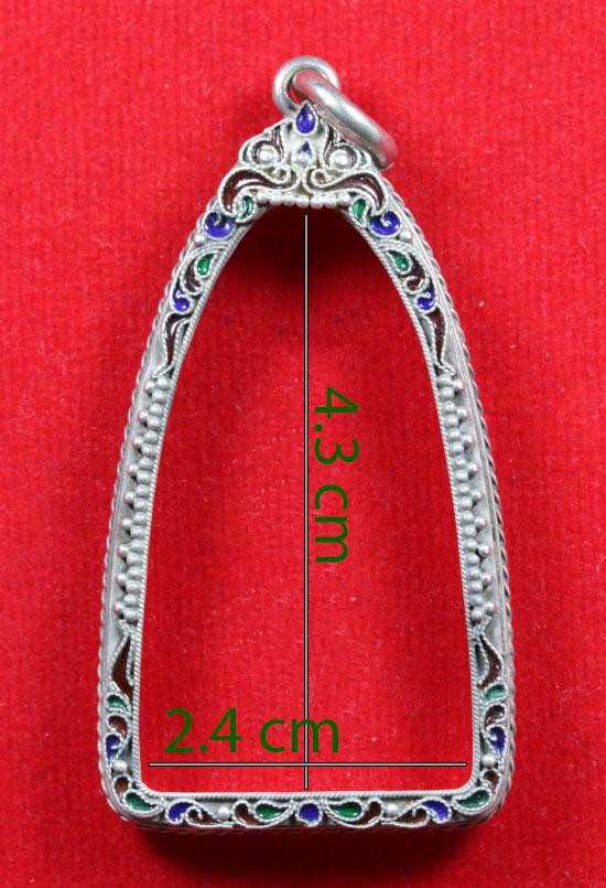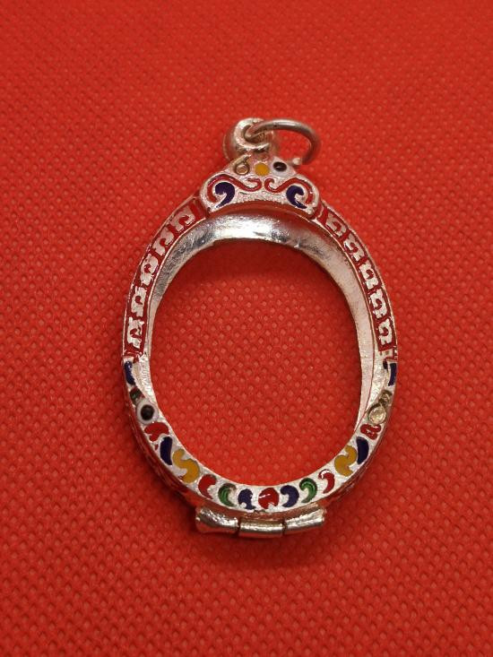 กรอบเงินแท้ลงยาสุโขทัย ใส่เหรียญรูปไข่ ลป.ทวด สวยหนา หัวสิงห์กนกใหญ่ สมบูรณ์หนัก 5.91 กรัม ของใหม่ไม่ได้ใช้เลยครับ |