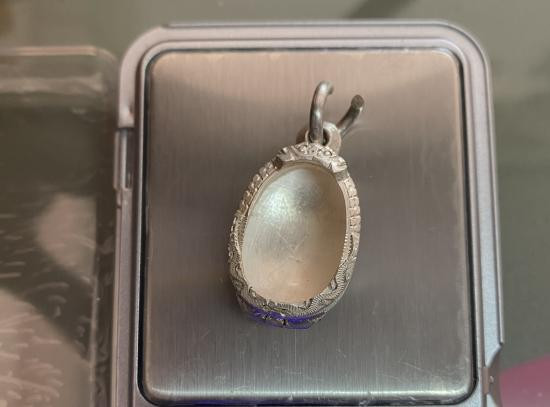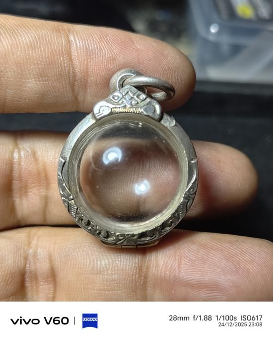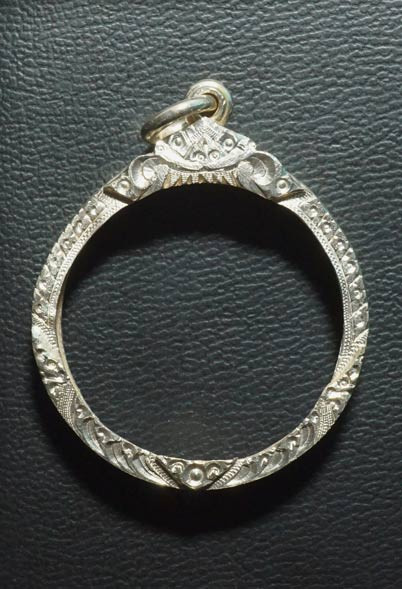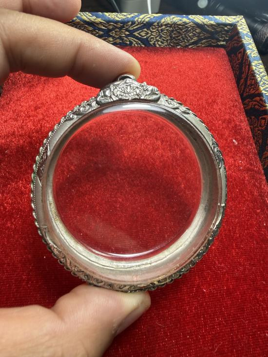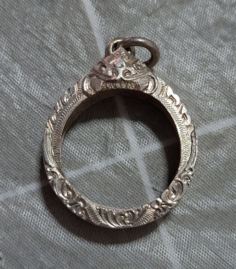 มือสองกรอบเงินใส่เหรียญน้ำเต้าหลวงปู่ทวด กว้าง 2.6 สูง 3.2 น้ำหนัก 6.8 กรัม |