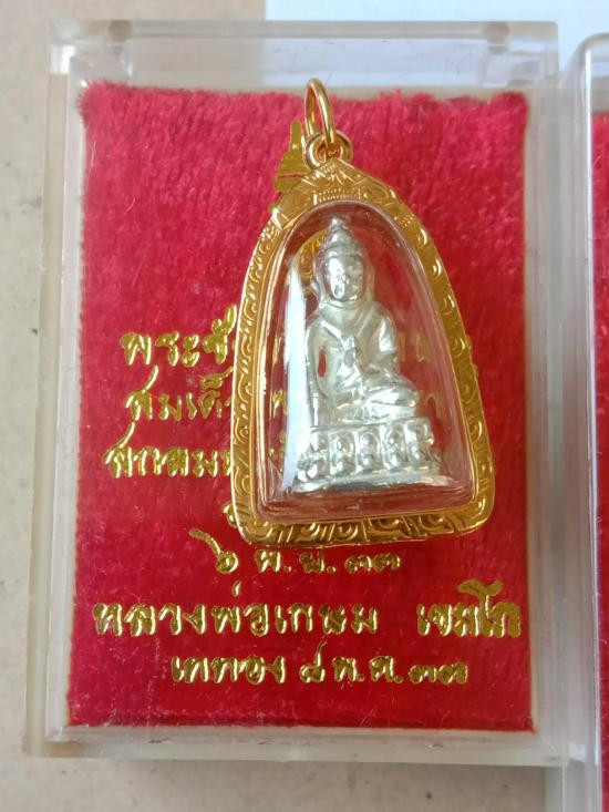 องค์ที่ 6 พระชัยวัฒน์ หลวงพ่อเกษม เขมโก เนื้อเงิน ปี 33 เลี่ยมทอง พระคัดสวย |