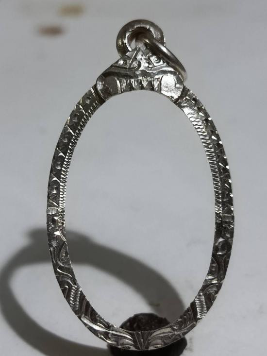 กรอบเงินแท้ ทรงงรูปไข่ พร้อมใช้งาน น้ำหนัก 6.73 กรัม ขนาดวัดจากด้านในกรอบ มีรูปเพิ่มเติมด้านล่างค่ะ |