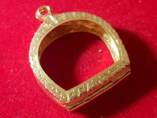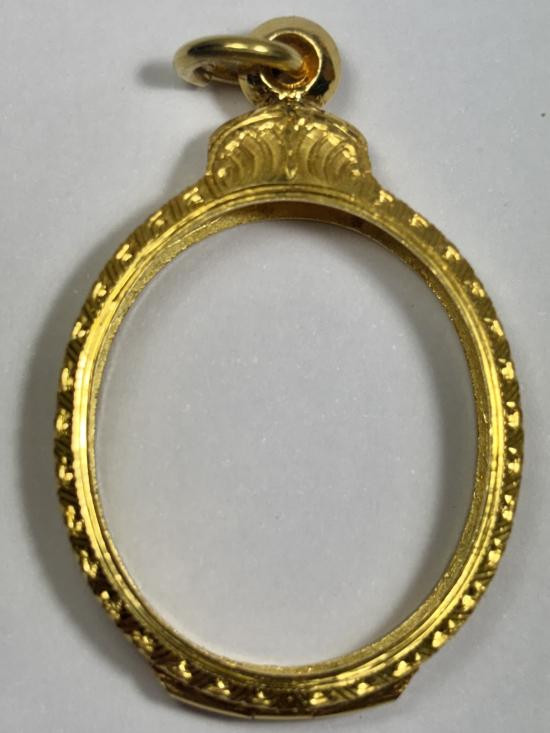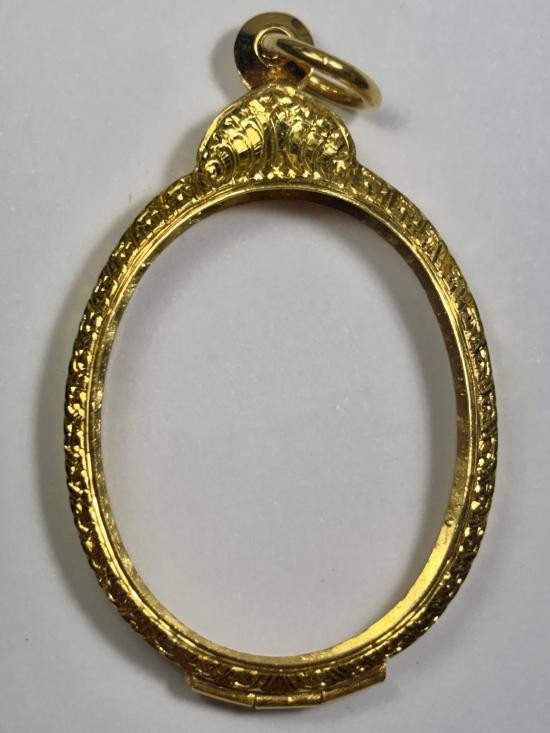 ตลับทองมือสองราคาถูก ใส่เหรียญรูปไข่ ห่วงเชื่อมหลวงปู่ทิม หรือขนาดใกล้เคียง กว้าง 2.7 ซม, สูง 3.5 ซม หนัก 13.36 กรัม |