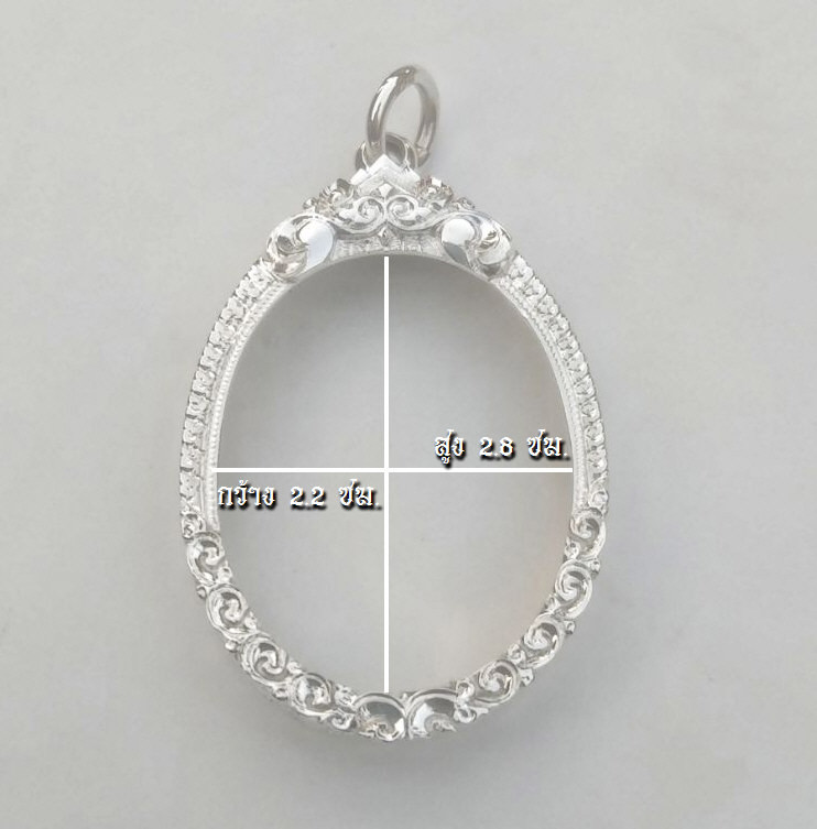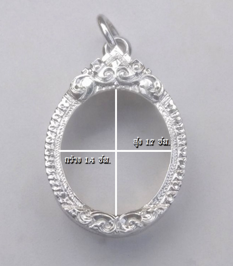 กรอบเงินแท้ 92.5% ตอกห่วง925 งานขึ้นมือยกซุ้มแกะลายฝีมือช่างชั้นครู ขนาดกว้าง2.2 สูง2.8ซม. น้ำหนัก4กรัม พิมพ์รูปไข่พระผงดวงเศรษฐี หลวงปู่หมุน หรือขนาดใกล้เคียง กรอบพับหลังมือ1 |
