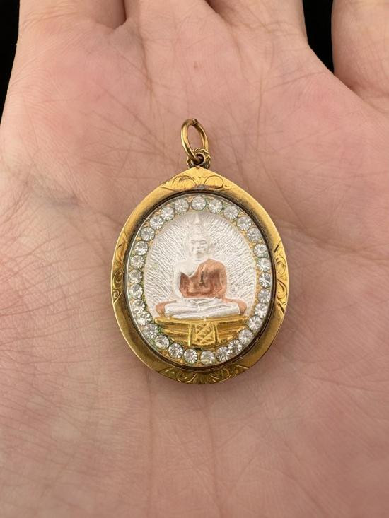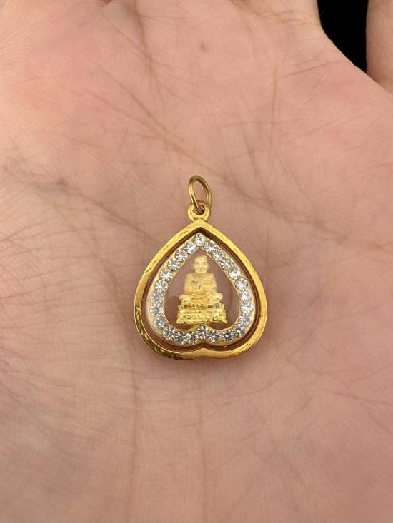 ** วัดใจ ** ตลับทองคำรูปไข่ สภาพสวย กว้าง 2.8 cm สูง 3.6 cm น้ำหนักทอง 8 กรัม พร้อมบัตรการันตีพระ |
