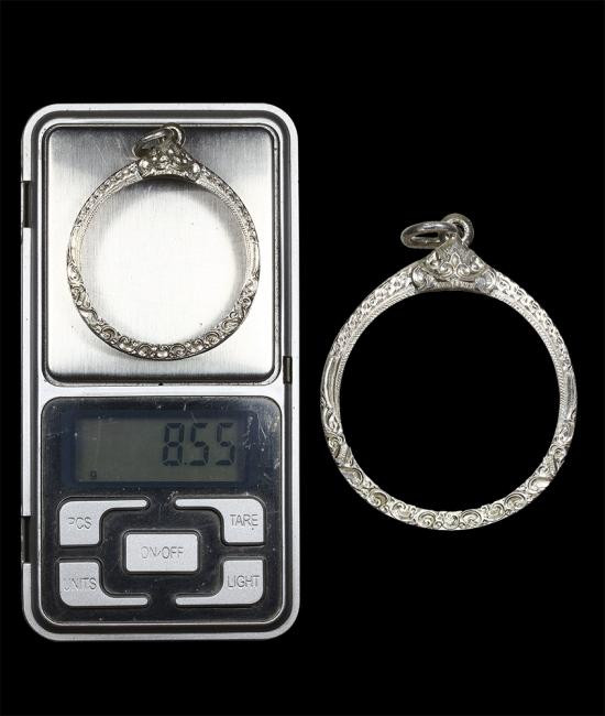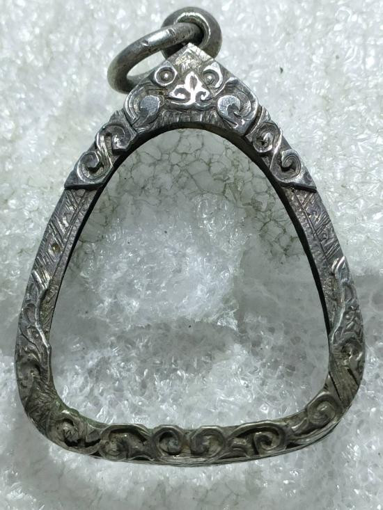 กรอบเงินแท้ทรงเสมาเก่า สภาพพอใช้ |
