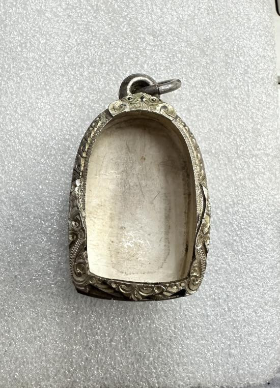ตลับเงินมือ2 หนา เปอร์เซ็นต์สูง สภาพใหม่งานแกะมือใส่ซุ้มกอหรือขนาดใกล้เคียง |