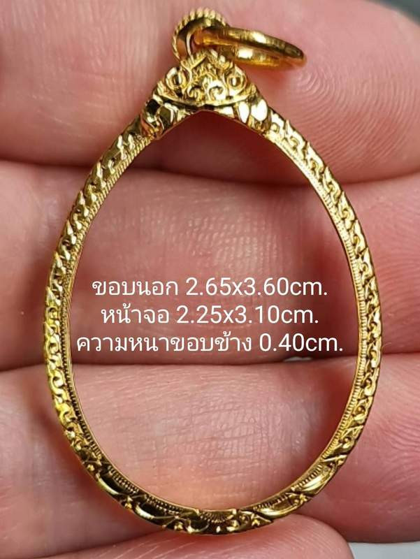 กรอบทองมือสอง ใส่เหรียญหลวงพ่อผางรุ่นแรก หลวงพ่อคูณ17 หลวงปู่ทวดรุ่น 2,4 และเหรียญทั่วไปที่ไกล้เคียง หน้าจอกว้าง 2.60 ซม., สูง 3.90 ซม. น้ำหนัก 1.56 กรัม เคาะเดียว |