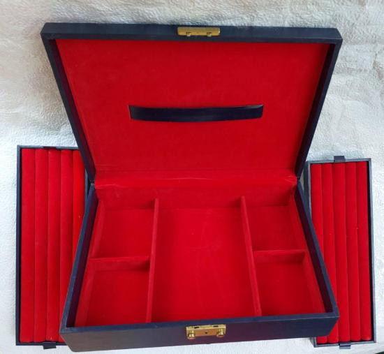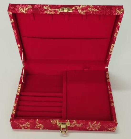 กล่องใส่เครื่องประดับ หุ้มผ้าไหมสีแดง