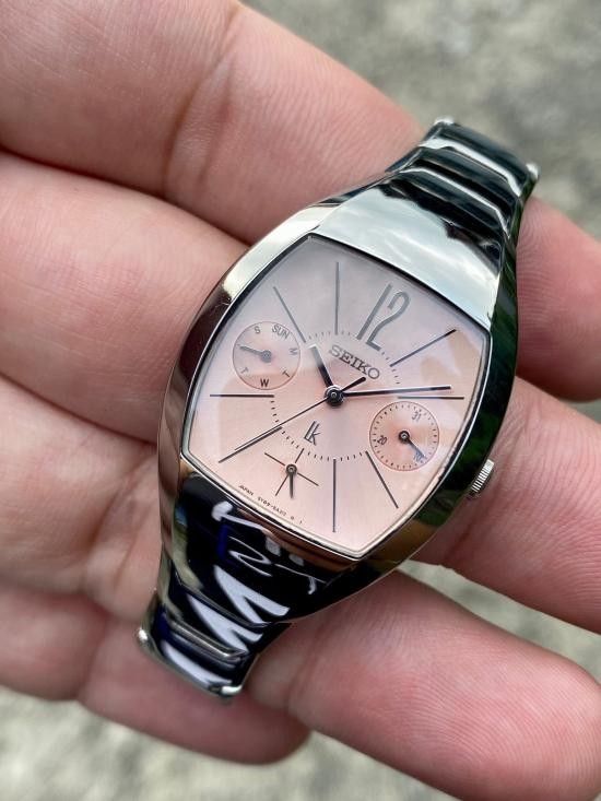 Seiko japan ระบบถ่าน ผู้หญิง 24 มม.รวมเม็ดโดยประมาณ เดินปกติเคาะเดียวครับ |