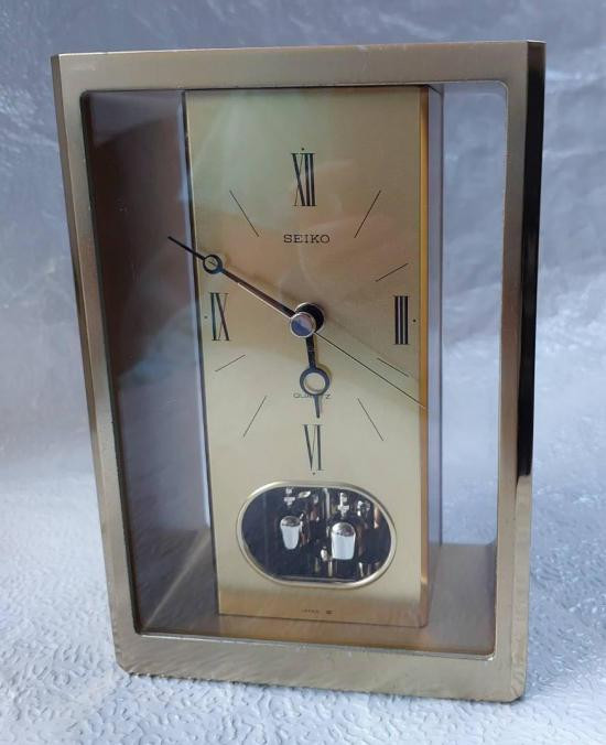 ***วัดใจ***SEIKO Quartz QZ406T นาฬิกาตั้งโต๊ะ โลหะสีทอง มือสองญี่ปุ่น |